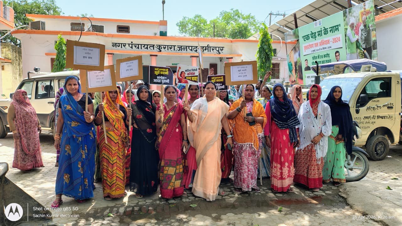 कुरारा (हमीरपुर), 26 अप्रैल 2026। नारी वंदन अधिनियम के परिसीमन का विरोध किए जाने के खिलाफ भारतीय जनता पार्टी महिला मोर्चा द्वारा देशव्यापी जनआक्रोश अभियान चलाया जा रहा है। इसी क्रम में आज नगर कुरारा में भाजपा महिला मोर्चा के नेतृत्व में जोरदार विरोध प्रदर्शन आयोजित किया गया। कार्यक्रम का